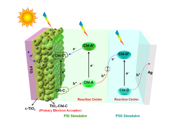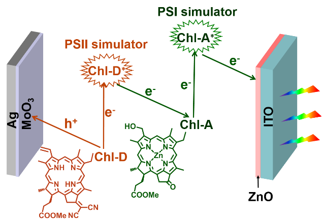 图2:模拟Z型光合作用的三层生物太阳能电池。