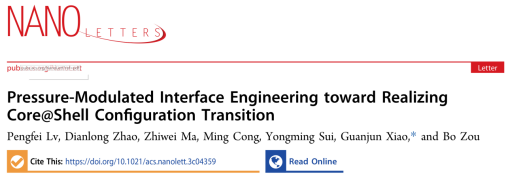 超硬材料国家重点实验室肖冠军教授团队在核壳纳米晶的高压光物理调控方面取得新进展,相关成果以“Pressure-Modulated Interface Engineering toward Realizing Core@Shell Configuration Transition”为题发表于《Nano Letters》。