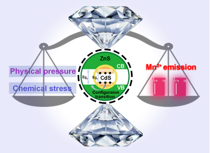 针对上述问题,该论文以CdS@ZnS纳米晶为研究对象,通过外部物理压力手段调控界面化学应变应力,通过内核中引入掺杂的Mn离子的发光定量描述外部物理压力与内部界面化学压力之间关系,并实现了高压下核壳纳米晶由准II型向I型的构型转变。