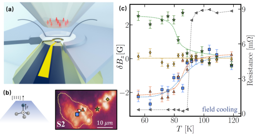 NV色心是金刚石内部的点缺陷,具有优异的磁场灵敏度和空间分辨率,是新兴的量子传感器。利用NV色心测量技术,研究团队能够在高温高压条件下制备的微量富氢化物样品中,实现迈斯纳效应和磁通量捕获的局部测量。这为在同一压力下测量超导电性的零电阻和迈斯纳效应提供了可能。