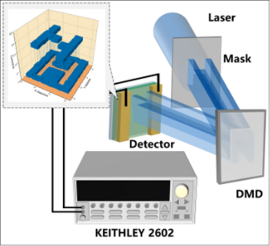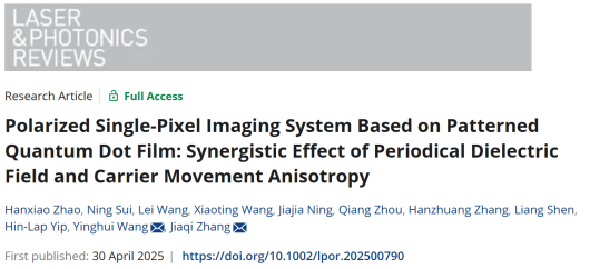 近日,博彩App 王英惠教授联合材料博彩App 张佳旗教授等人利用DVD的周期性结构,成功制备出具有偏振特性的CsPbBr3量子点薄膜光电探测器,并实现了单像素偏振成像系统。这一创新不仅揭示了周期性介电场与载流子运动的协同效应,还为量子点材料在偏振成像领域的应用开辟了新路径。相关研究成果以“Polarized Single-Pixel Imaging System Based on Patterned Quantum Dot Film: Synergistic Effect of Periodical Dielectric Field and Carrier Movement Anisotropy”为题发表在《Laser & Photonics Reviews》上。