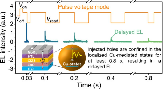 量子点发光二极管(QLED)作为新一代显示与照明技术的关键器件,正引起学术界与产业界的高度关注。随着研究的深入,QLED凭借其快速光响应能力与可调发光特性,可实现光学写入、读取以及多级编码的功能,具备集成传感、存储与显示功能的潜力。而QLED实现写入/读取功能的核心在于电荷的有效存储与载流子的积累、提取以及再复合过程。因而,实现其类存储器功能的关键在于对电荷储存及后续提取复合行为的有效调控。因此,深入理解并调控其内部的载流子动力学过程尤为关键。