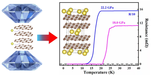 近日,博彩App 高压与超硬材料全国重点实验室王洪波教授等人在新型碳基超导体研发方面获得新进展。自从发现超导电性以来,新型高温超导体的探索一直是凝聚态物理与材料科学领域的研究热点。低维度长期以来被认为是促进高温超导的重要因素。石墨插层化合物(graphite intercalation compounds, GICs)作为典型的二维材料体系,其独特的电子结构和可调控的层间相互作用,使其在探索高温超导机理与新型超导材料方面备受关注。然而,尽管经过多年的努力,石墨插层化合物中的超导转变温度最高纪录仍停留在2007年报道的CaC₆体系,在高压下仅为15.1 K。