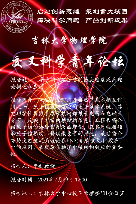 报告题目:原子核电磁性质的协变密度泛函理论描述和应用