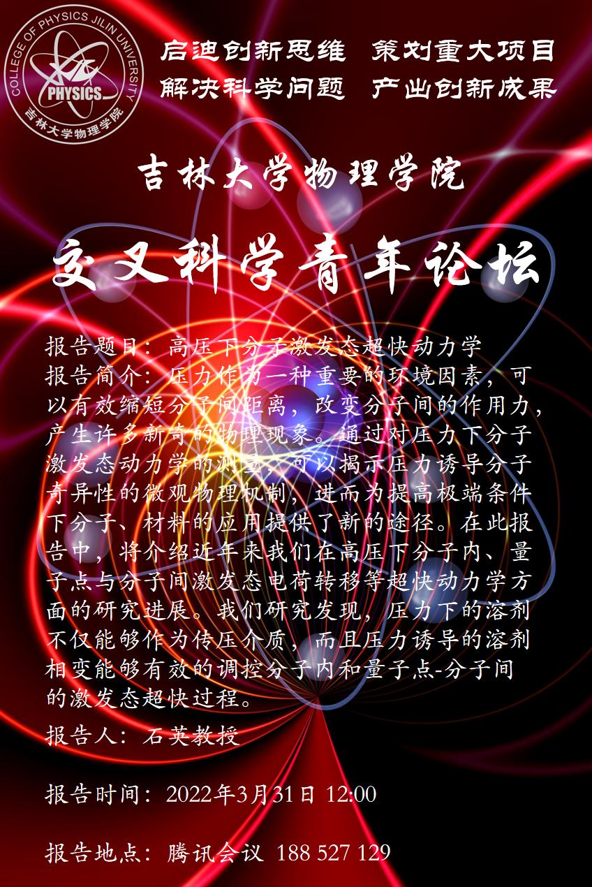报告题目: 高压下分子激发态超快动力学