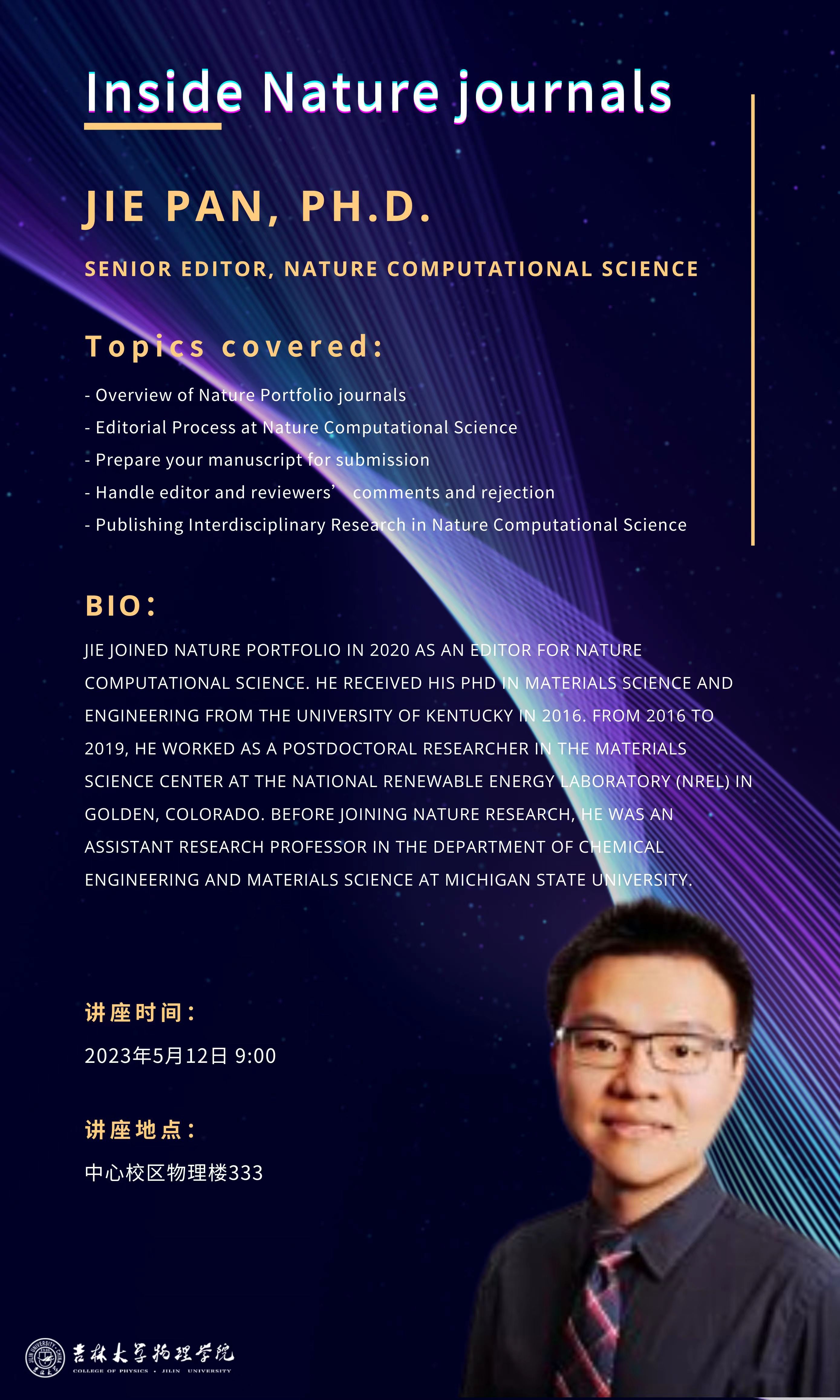 报告人:Jie Pan, Ph.D. Senior Editor, Nature Computational Science