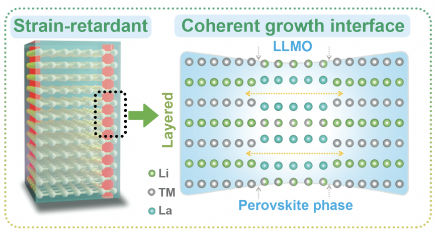 图1相干钙钛矿相锚定富镍正极结构。