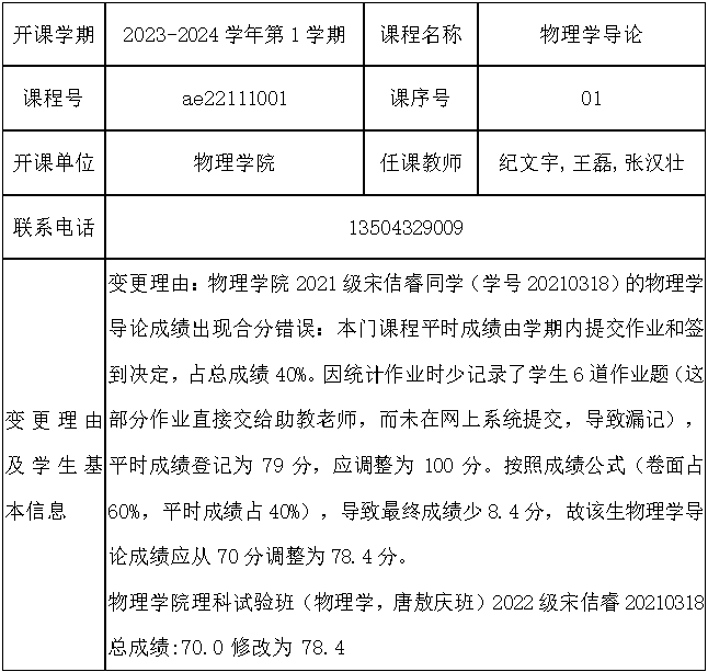 根据《关于进一步明确本科生课程考核等有关问题的通知》(校教字[2018]47号)文件有关精神,现对一下课程成绩更正进行公示:
