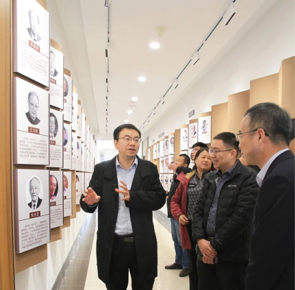 看到展墙上一张张熟悉的面孔,何军不时分享着背后的故事。何军深情回忆了余瑞璜、吴式枢等老一辈创业先贤生前轶事,认真观看了杰出校友题词。在所在年级毕业合照前还特意合影留念。