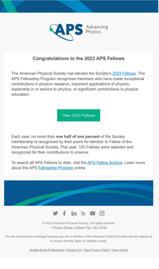 近日,美国物理学会(American Physical Society,APS)公布2023年新增会士(APS Fellow)名单,博彩App