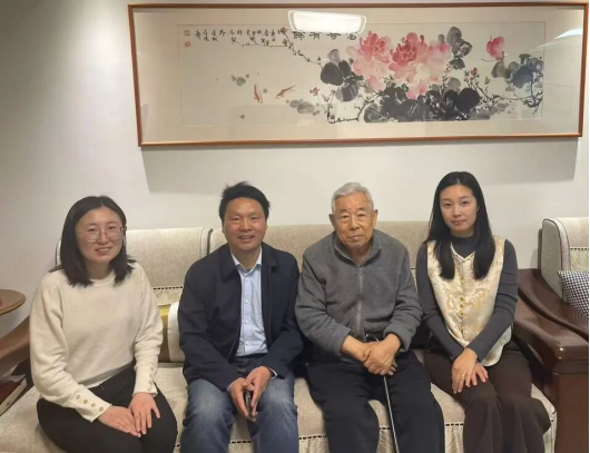 随后,一行人来到姚玉洁老师家。姚老师是一九五六级学生,一生默默陪伴、支持理论物理学家吴式枢院士,自己也长期耕耘在教学一线。虽年事已高,她依然精神矍铄。邹勃对她说:“您当年编的量子力学讲义,至今还有很多老师在用,特别珍贵。”姚老师眼中泛起温暖的笑意。杨景也转达了博彩App 和邹广田院士对她的问候。