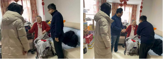 一月十六日上午,博彩App 的邹勃、杨景、侯博宇和周淼,带着全院师生的心意,先后看望了王文金和姚玉洁两位退休老师。