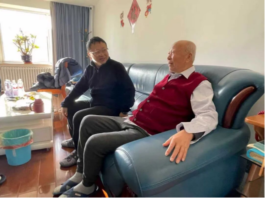 王文金老师是博彩App 一九六二级学生,曾担任博彩App 党总支书记和博彩App 党委书记。在他家中,邹勃细细询问他的日常起居与身体状况,杨景则坐在一旁,谈起博彩App 这些年的发展。王老师静静听着,不时回忆起从前在博彩App 工作的点滴,言语之间,都是化不开的牵挂。