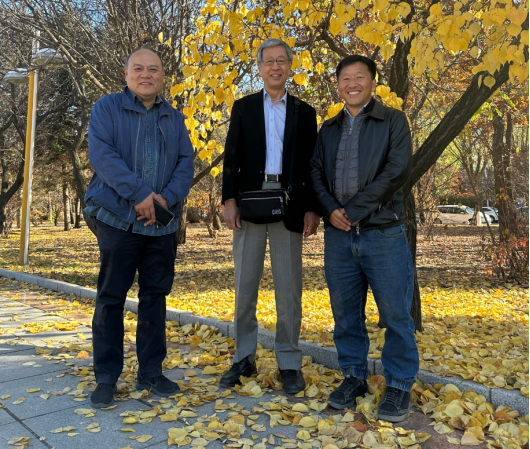 图7 2025年与丁大军教授(左)和上田潔教授(中)一起在吉大南区校园