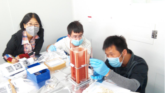 图6 2014年在实验室与马盼(左)、牛永(中)一起安装谱仪