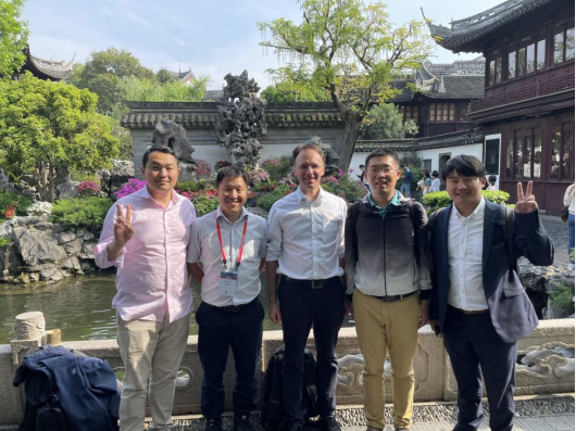 图8 与Wörner教授和曾经的同事相聚在上海(左1为Zhong Yin博士,左2为本人,左3为Hans Jakob Wörner教授,左4为吉家葆博士,左5为宫晓春博士)