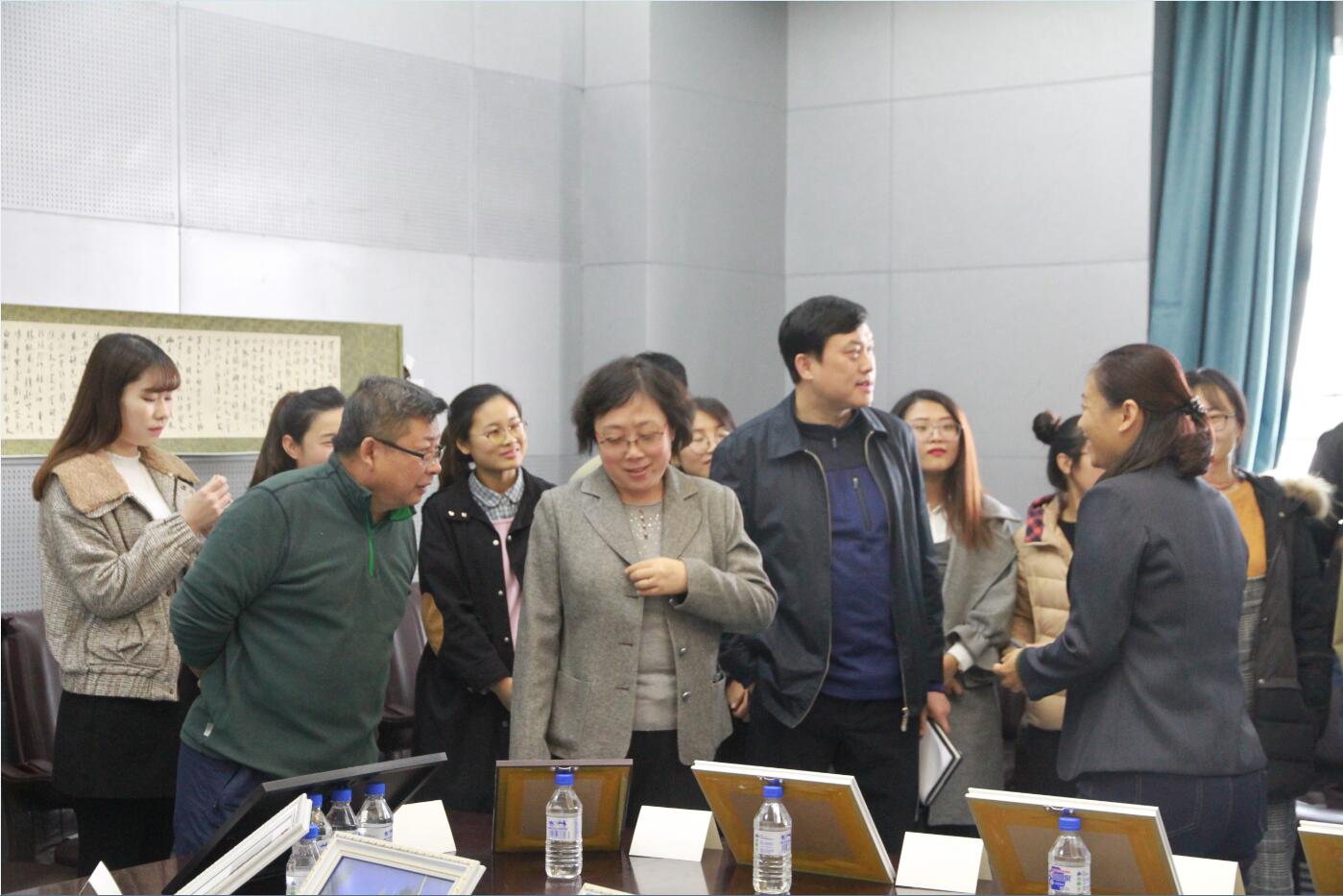 党委书记孟文卓等五位老师组成的评审组认真的听取了每名参赛选手的作品简介、主题,并与他们进行了亲切的交流。经过评审组充分讨论,评选出一等奖两个、二等奖四个、纪念奖若干。