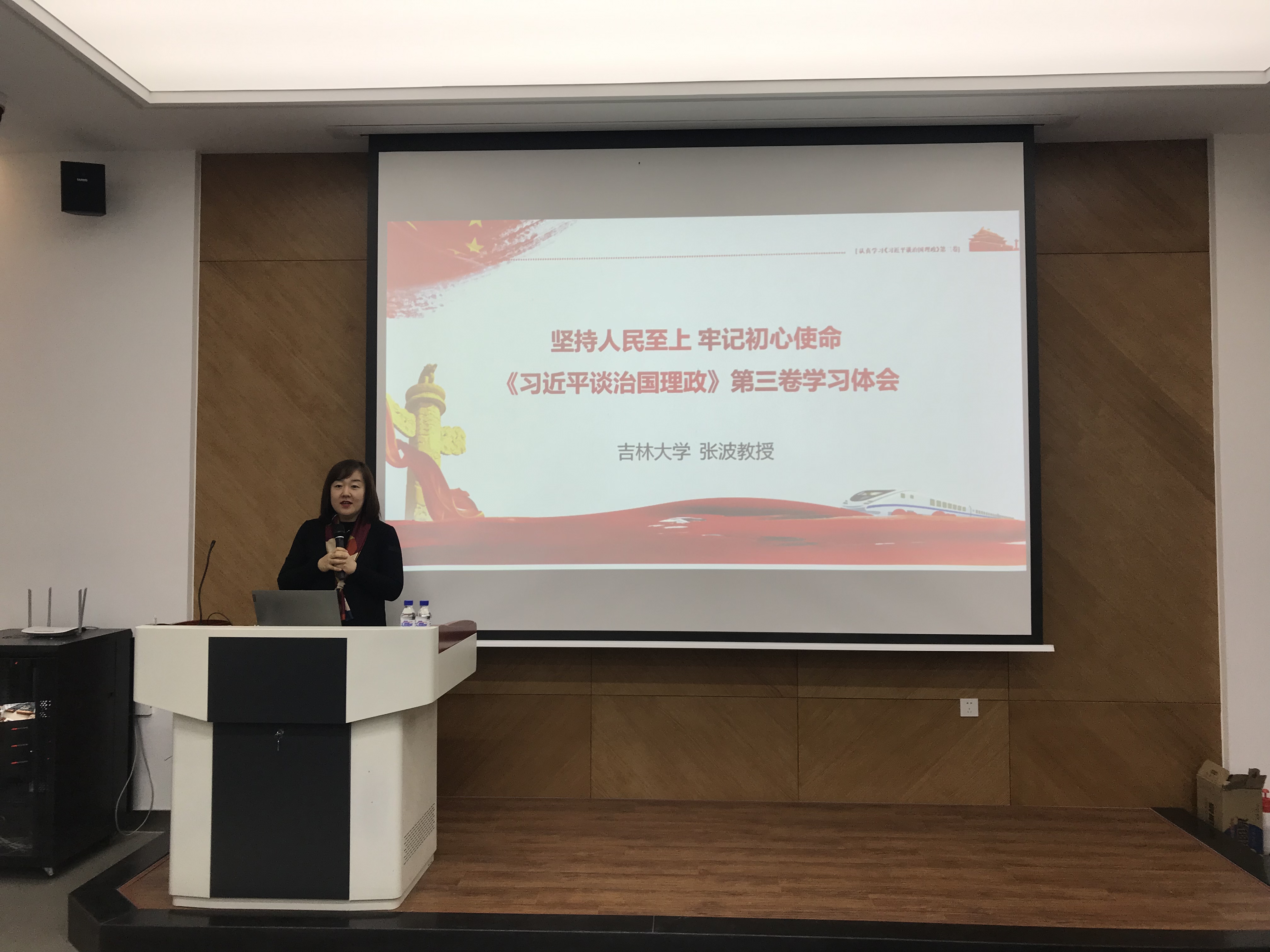 张波教授详细论述了习近平新时代中国特色社会主义思想是立足中国、引领时代的当下中国马克思主义、21世纪马克思主义,是进行“两个革命”、创造“两个奇迹”的行动指南是为携手构建人类命运共同体贡献的中国智慧、中国方案。她强调学习《习近平谈治国理政》第三卷内容,对于推动广大党员、干部和群众学懂弄通习近平新时代中国特色社会主义思想,增强“四个意识”、坚定“四个自信”、做到“两个维护”的认识和理解,具有重要意义。