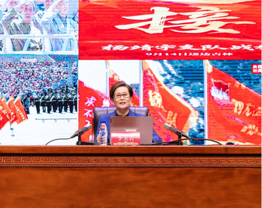 本次活动特邀延吉市委党校第一教研室主任、东北抗联研究会成员李美岩副教授作题为《传承抗联史,弘扬抗联魂》的专题报告。李美岩老师以东北抗联十四年艰苦卓绝的斗争历程为主线,用一个个有血有肉的真实故事,将那段烽火岁月生动再现于师生面前。