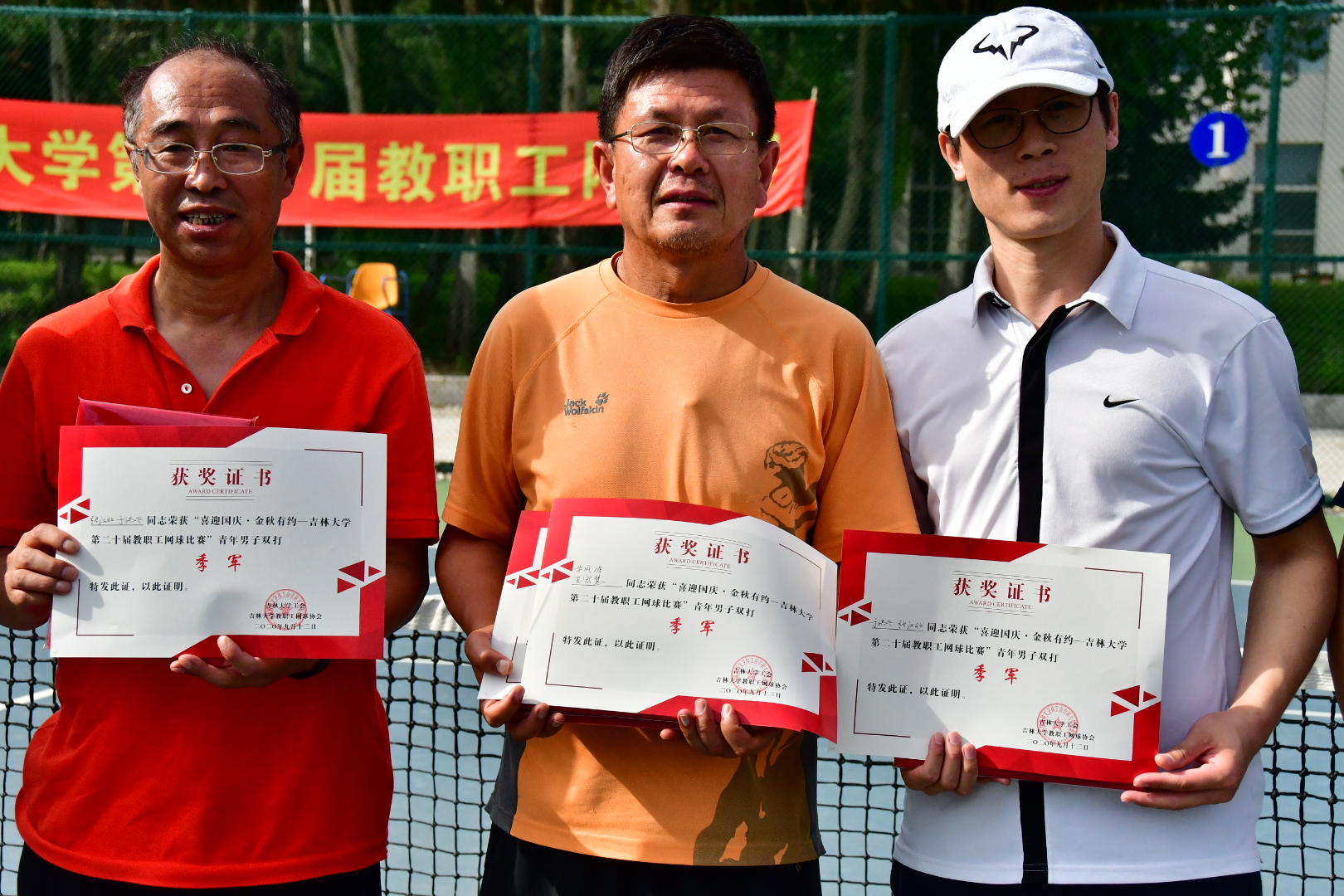 由校工会举办的“喜迎国庆,金秋有约”博彩App 第二十届教职工网球比赛顺利落下帷幕,博彩App 网球队代表张汉壮、于洪飞两位老师在比赛中激烈角逐、火力全开、奋勇拼搏,最终斩获青年男子双打季军、中年男子双打季军的骄人成绩!