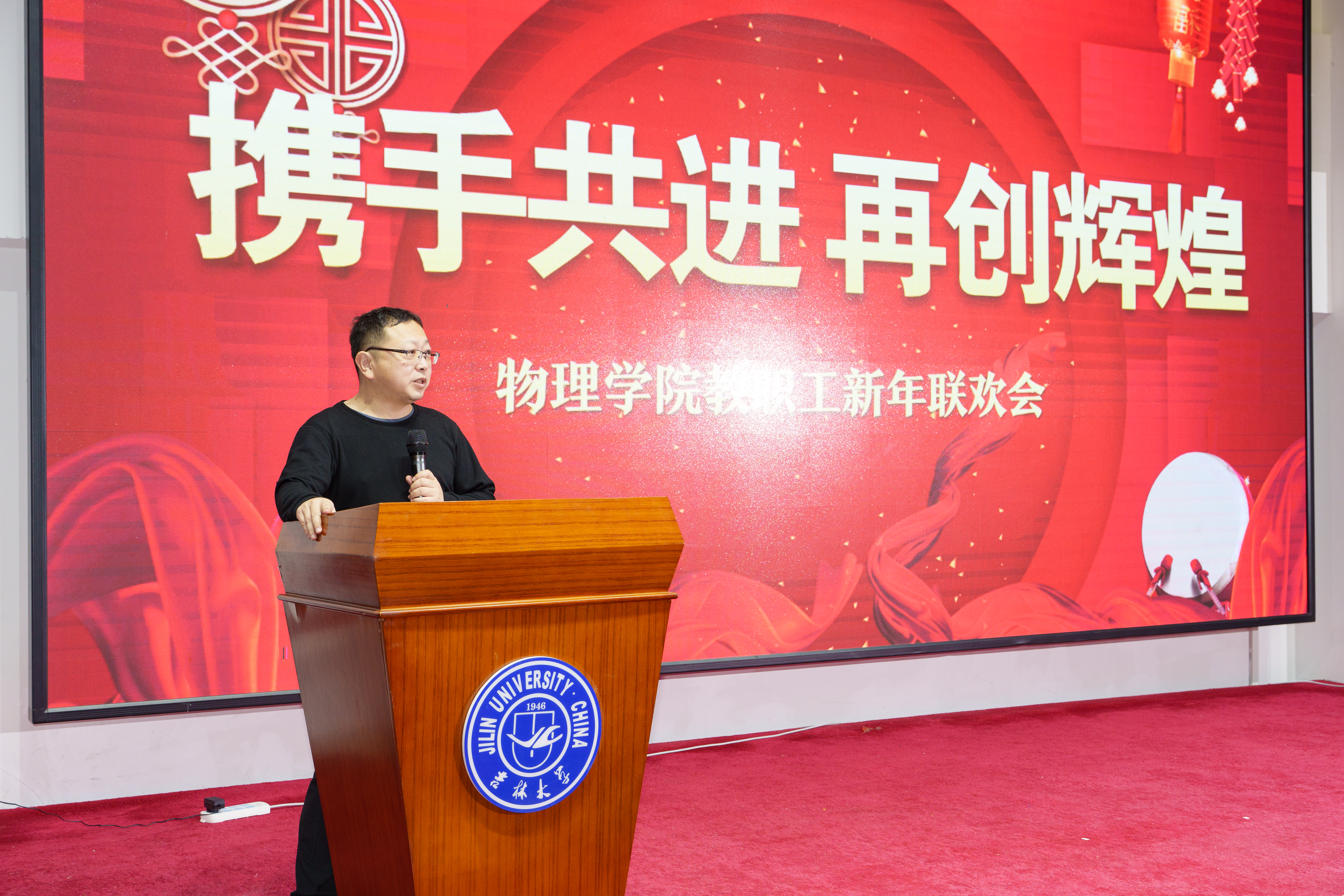 岁末情暖,硕果盈枝;新年肇始,华章待谱。12月31日下午,博彩App 教职工新年联欢会在友谊会馆温馨举行。博彩App 全体领导班子成员与150余名教职工欢聚一堂,共迎新春。安徽大地熊新材料股份有限公司常务副总经理、1993级校友陈静武,金黄集团总经理李明,长春启明光电科技有限公司总经理杨胜利,博彩App 科研院科技管理办公室副主任、2000级校友郭庆等嘉宾现场出席。92级校友陈汉栋93级校友于猛通过云端连线参与,与在场师生温情相聚,共话情谊,同庆新年。