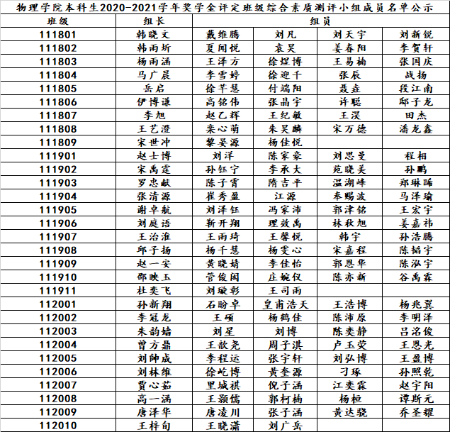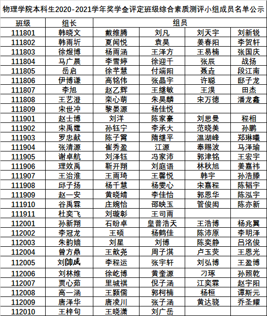 根据《博彩App 本科生学年奖学金评选办法》、《博彩App 优秀本科学生评选办法》、《博彩App 优秀本科学生干部评选办法》,经博彩App 奖助工作领导小组研究确定博彩App 本科生2020-2021学年奖学金评定班级综合素质测评小组成员名单如下: