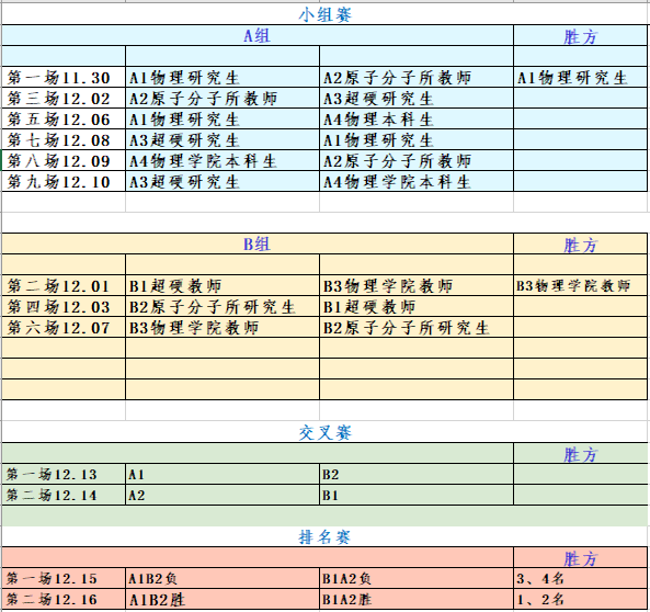 本科生队组成;B组由超硬材料国家重点实验室教师队、原子与分子物理研究所研究生队和博彩App