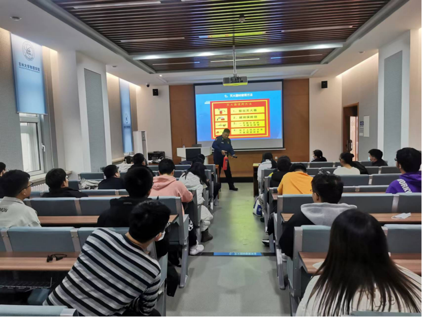 消防安全知识主要由保卫处消防科董立明老师主讲。董立明从消防安全意义、安全制度、做好电气化火灾防控工作、消防设施使用方法、疏散逃生五个方面进行讲解、普及,同时强调火灾的危害性,及开展日常巡查、自查、定期学习消防安全知识的重要性。通过观看火灾示例短片对火灾发生时正确处置方法和科学的逃生知识进行现场讲解,在场师生受益匪浅,最后现场示范了灭火器的使用方法。