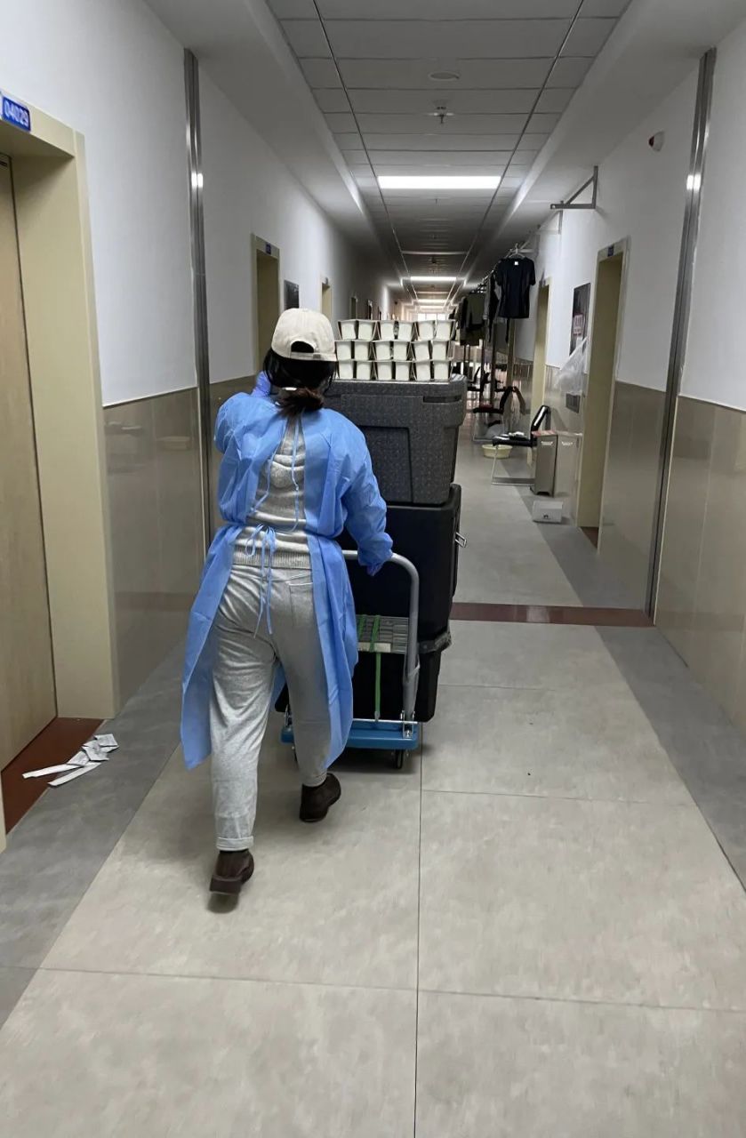 在封寝后的第一时间发布了志愿者征集令,立刻得到众多同学的热情响应,我所在的北苑三公寓有一百一十余名同学想要为抗疫贡献自己的力量,并且人数还在不断增加。当我第一次听见志愿者姑娘们简短有力的话语,“同学,请取餐”,眼泪瞬间浸湿了眼眶,心里交织着感动和温暖。此后每天,她们默默为同学们服务,分发一日三餐,搬运数不清的医疗物资,清理生活垃圾,统计核酸检测情况,她们卸下红妆,穿上防护服,身躯虽柔弱,坚守若磐石。我自己也报名了志愿者,虽然志愿工作排班还没有到我,但我时刻准备着为同学们服务,我相信只要我们一起共同面对,再大的困难都可以战胜。