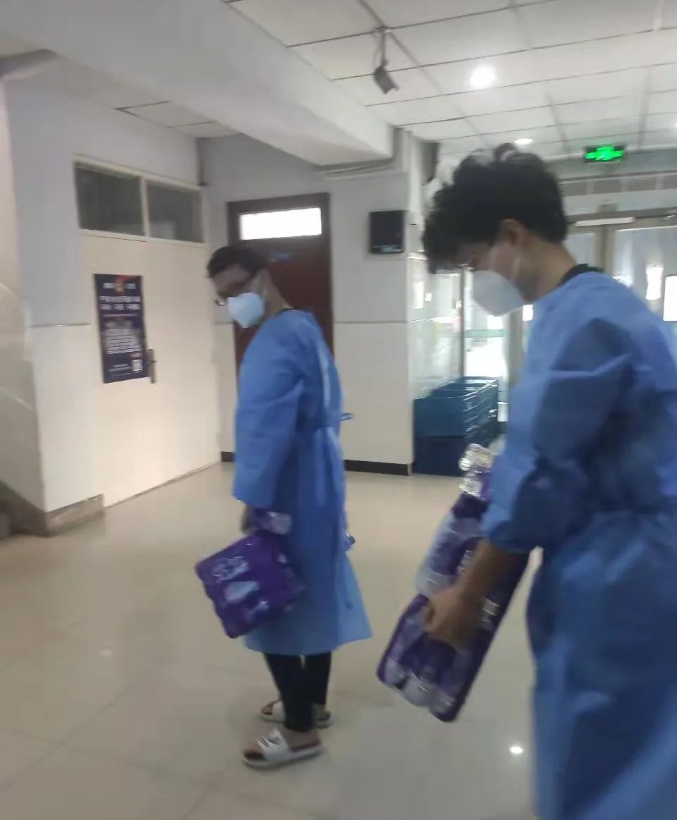 一名党员就是一面旗帜,党组织有需要时“站得出来”,关键时刻“顶得上去”,疫情是一场对全体党员自身党性修养的大考,也是关于党员使命宗旨的试金石。自宿舍楼封闭管理以来,党员志愿者忙碌在服务同学的一线,配送每日餐饮、统计核酸结果、辅助医务人员采集咽拭子、运送医疗废弃垃圾等工作都能看到他们的身影。我、许笑然、侯旭远、郝琨和原子所的于法民同学负责的片区是文苑六公寓五楼,楼层高度相对较高,每天需要配送9箱矿泉水,和楼层所有同学的一日三餐,志愿者同志们克服楼层高、物资重等困难,每日往返一楼至五楼多次。几趟下来汗水就把衣服浸透了,但没有一名同志叫苦喊累,所有的同志都憋着一股劲、拧成一股绳,希望为同学们做好保障服务。