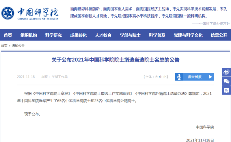 院士增选当选院士名单,此次选举共产生了65名中国科博彩App