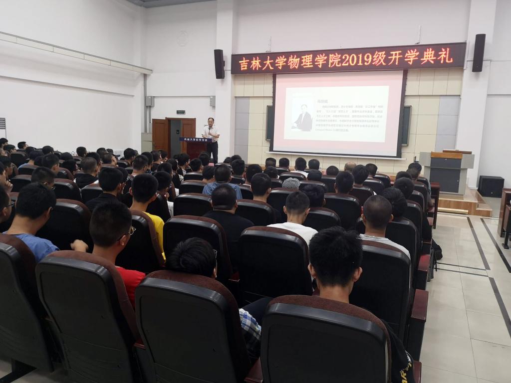 对2019级新生的到来表示热烈欢迎,并以自身经历为例,勉励同学们学会自主学习、独立生活,培养坚忍不拔,追求卓越的精神品质。他叮嘱同学们要常怀感恩之心,感恩父母对我们的养育之恩;感恩老师对我们的谆谆教诲;感恩国家繁荣昌盛,岁月静好。他希望同学们以“求实创新、励志图强”的校训为指引,在未来的学习生活中发挥物理人笃学敦行,脚踏实地的优良作风,努力成为勤学善思,博学多识的新时期大学生。