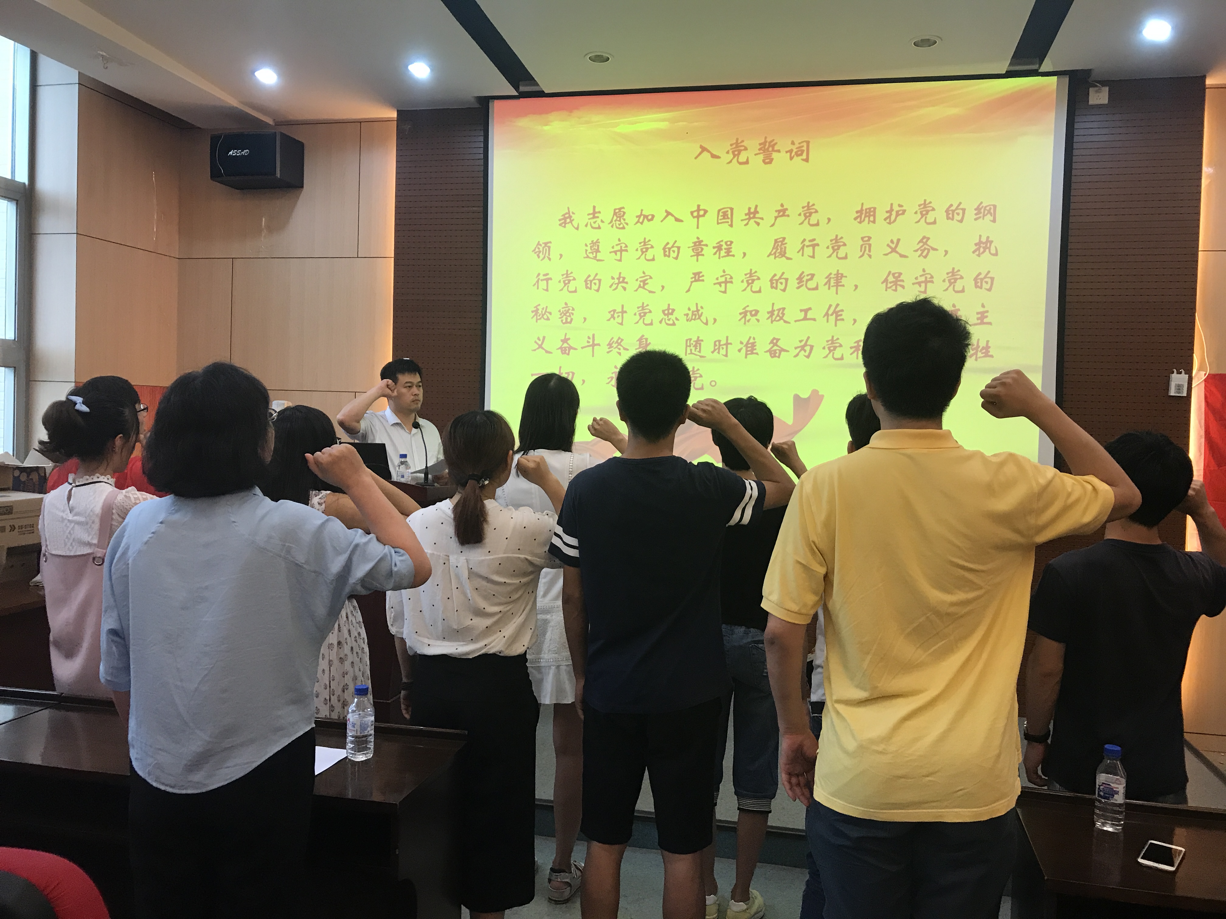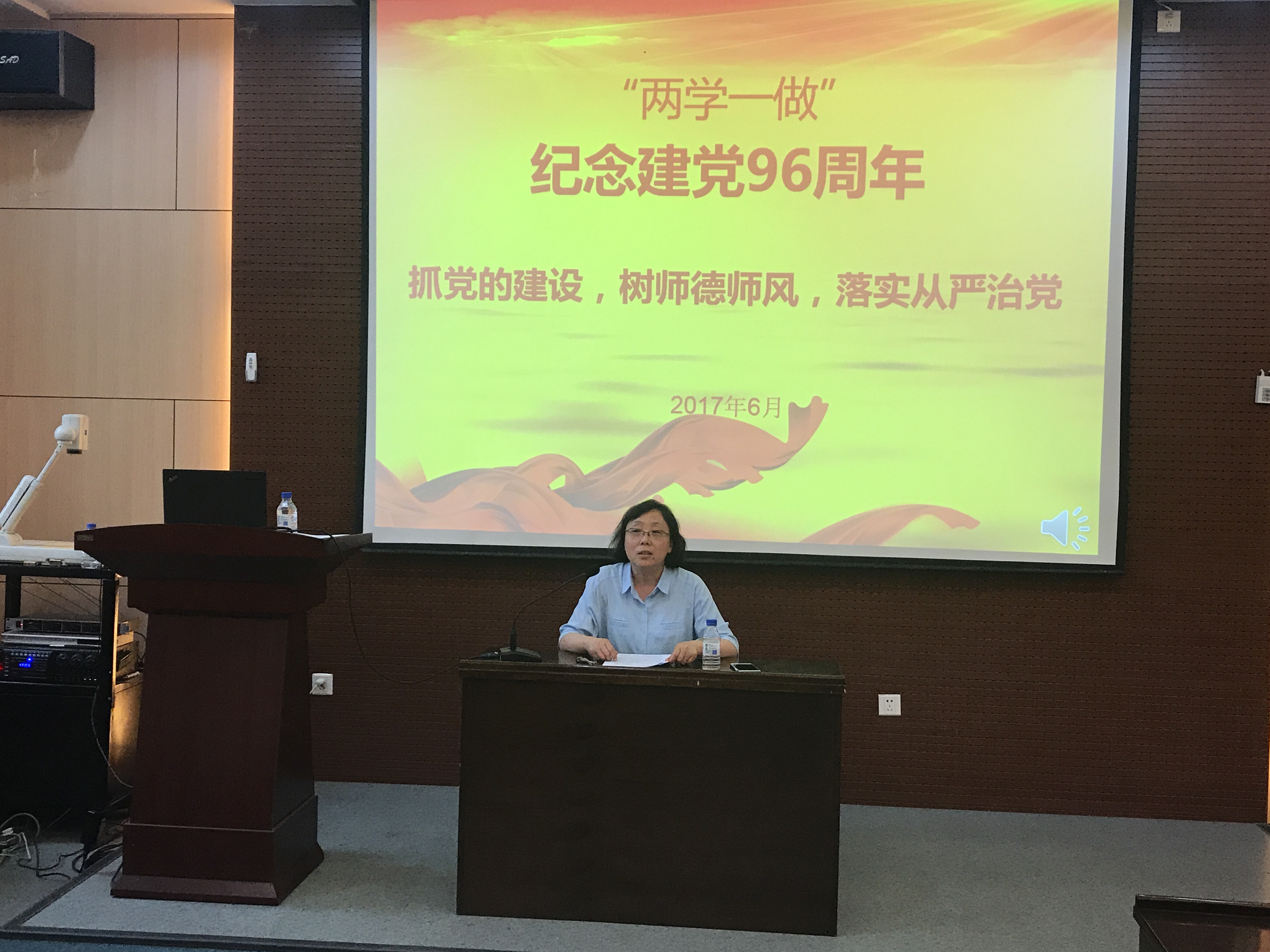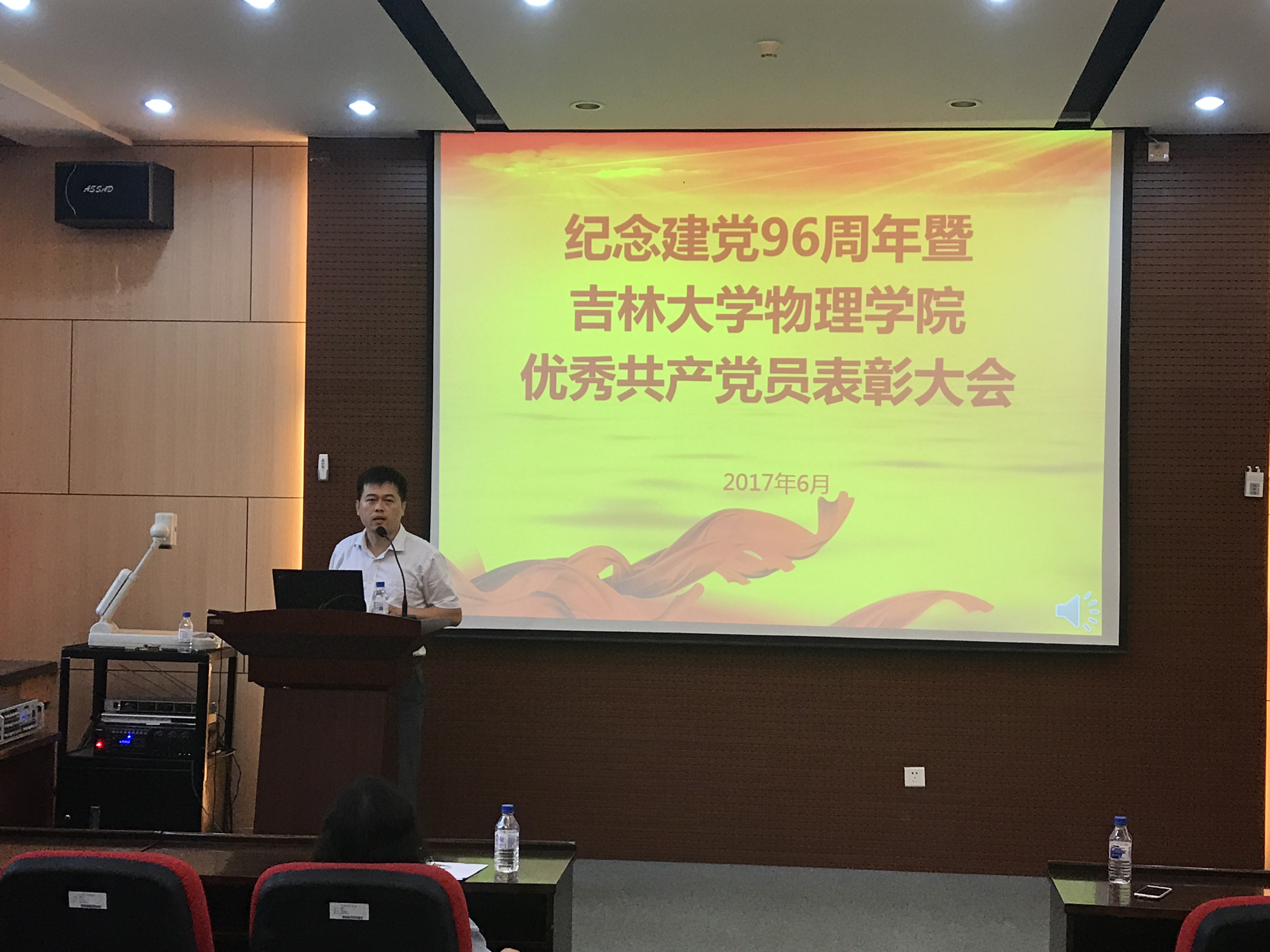 于物理楼333室开展“庆祝建党九十六周年党员宣誓暨优秀党员表彰大会与专题党课”系列活动。全体教师党员、新发展学生党员与优秀学生党员代表参会,共100余人。会议由党委副书记孙长伦主持。