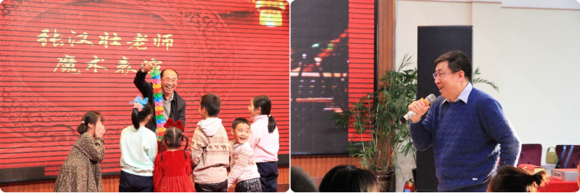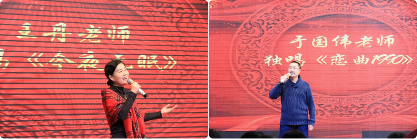 接下来是老师们精心准备的文艺节目,实验中心教师的合唱《团结就是力量》铿锵有力、激情澎湃,传递着团结和凝聚的力量;于国伟老师、王丹老师分别带来了优美动人的老歌独唱,每一曲都勾勒出不同的情感画面,让人们沉醉其中;高压科学中心教师的诗朗诵《我的祖国》激发了人们对祖国的深沉情感;张汉壮老师的魔术表演更是为联欢会增添了神秘与惊喜。