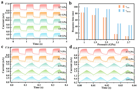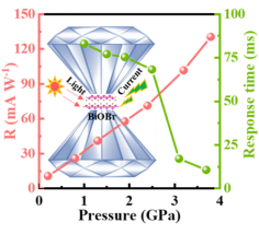 图1. BiOBr的光响应度和响应时间的压力依赖性