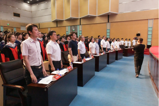 党委书记孟文卓、院长邹勃、党委副书记杨讴菡、唐宗明,副院长王海军、杜菲、杨景,学位委员会成员姚明光、韩永昊、马克岩以及教师代表年桂君、各年级辅导员,与毕业生、家长共同见证了这一重要时刻。