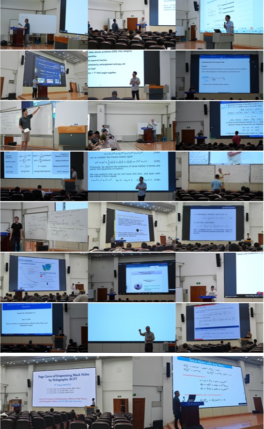 自7月8日始,讲习班聚焦于流体力学、有效场论和全息引力理论,邀请了包括国际弦理论专家Elias Kiritsis教授、引力理论权威吕宏教授、新视野物理奖得主Tadashi Takayanagi教授,以及国家杰出青年基金获得者陈斌教授、蔡庆宇教授和张潘研究员等在内的25位顶尖学者,持续开展了十四天的专题讲授,内容涵盖了AdS/CFT对偶简介、全息纠缠熵、泛函重整化群、经典流体力学、黑洞物理、黑洞信息丢失、全息非平衡态物理、超引力理论、全息量子色动力学、全息凝聚态理论以及机器学习等。