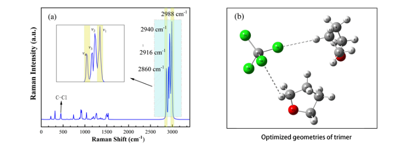 为了进一步阐明增强机制,作者通过密度泛函理论(DFT)模拟计算了CTC与THF混合的弱氢键耦合作用。结果表明:当THF和CTC的比为2:1时,在弱氢键作用下形成了三聚体,与实验结果高度一致。