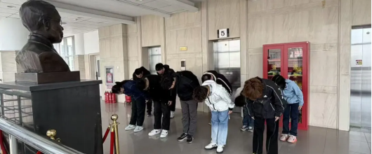 随后,全体师生依次上前,向先贤雕像深深鞠躬致敬。