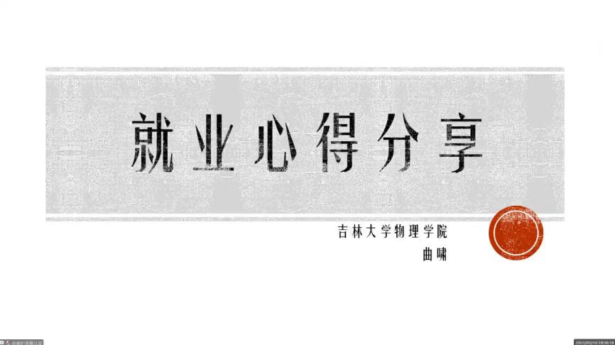 分享嘉宾曲啸,应用物理专业,签约北京小米移动软件公司上海分公司。曲啸介绍了自身求职的心路历程,他强调要深入理解所应聘岗位的特性和要求,在求职过程中要不断学习岗位新知识,不能满足于现状,在提升沟通技能的同时也要扩展专业技能,成为企业需要的复合型人才。