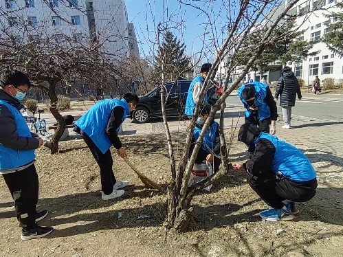 22级四班团支部于3月4日中午在中心校区南苑一二公寓之间的区域开展“学雷锋”主题志愿服务活动。