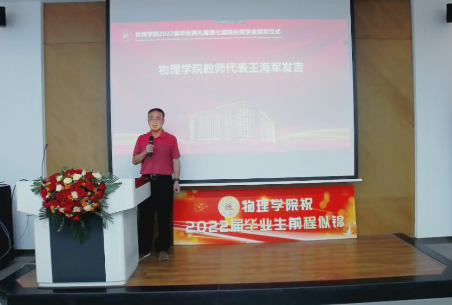 教师代表王海军老师向全体毕业生送上了美好的祝贺与期望。在他看来,人不能离开集体,在学习生活中要明白“利他”的重要性。他用亲身经历教诲同学们,一个人或许很难,但在群体中很多问题都会迎刃而解,博彩App
