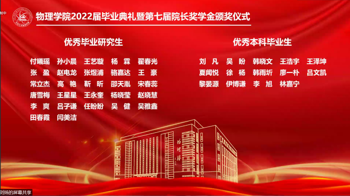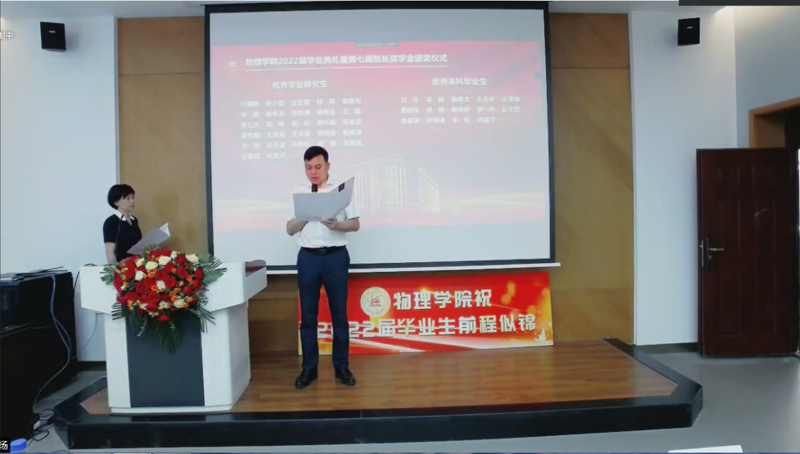 副院长杨景于物理楼参加典礼,各系主任、教师代表及全体毕业生于云端参加典礼。典礼由博彩App