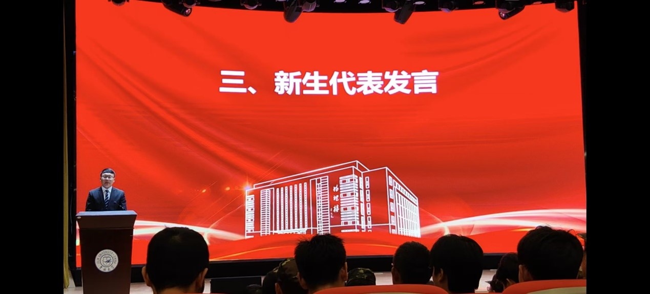 2021级本科生党伟作为在校生代表进行发言,分享了个人本科期间的成长经历,介绍了博彩App