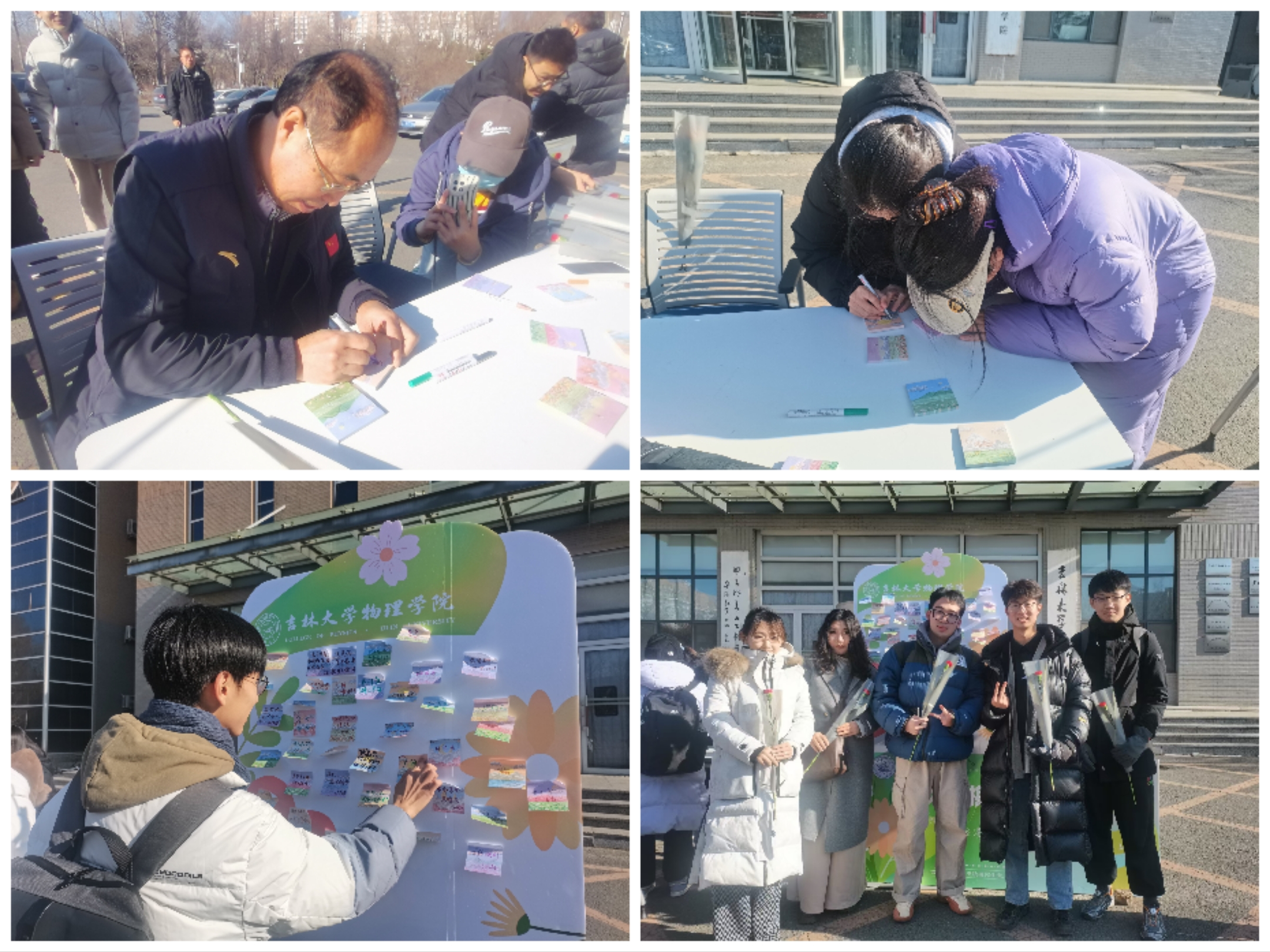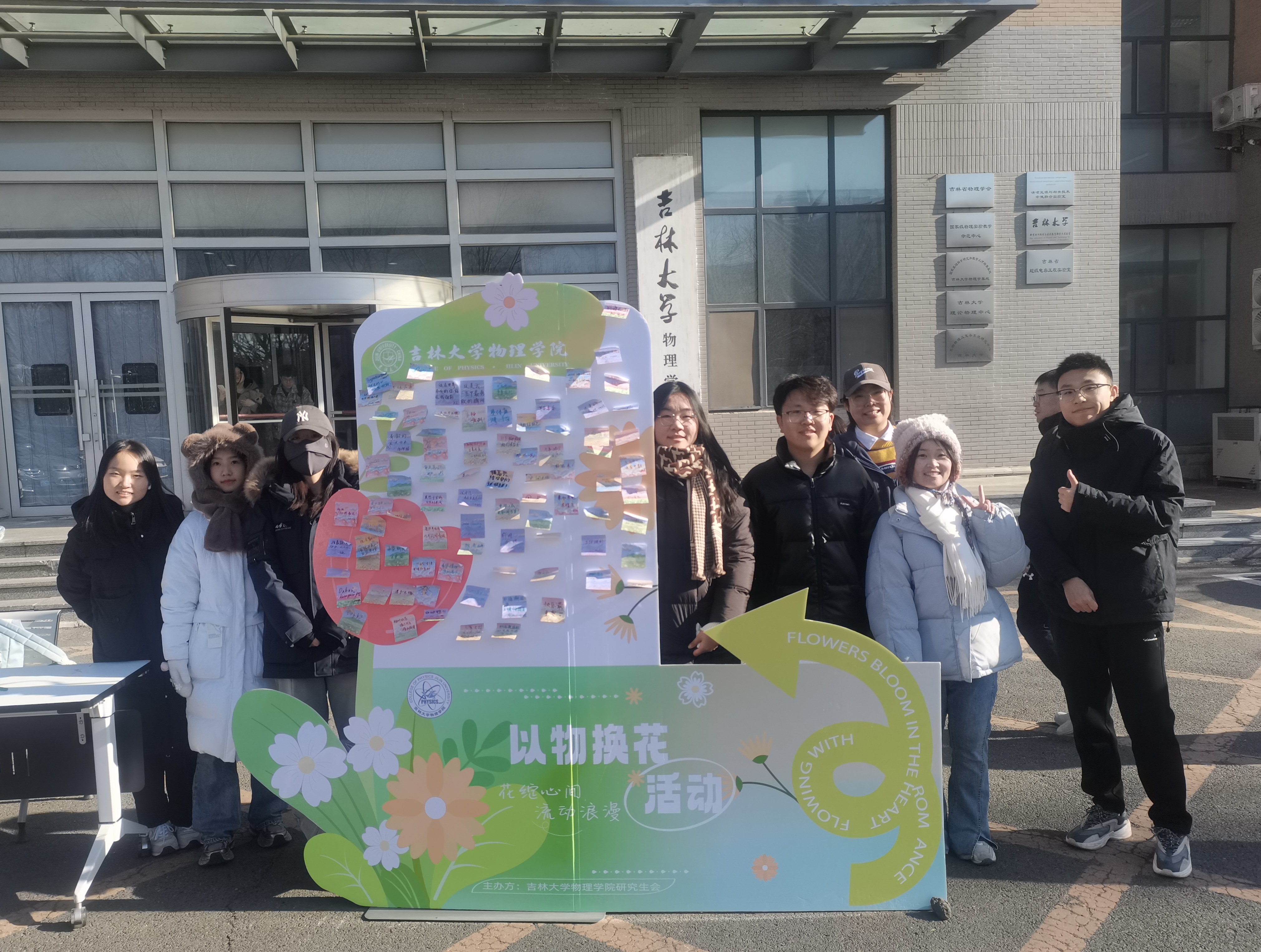 研究生办公室在物理楼门前举办“花绽心间,流动温暖——以物换花”冬日活动。尽管气温骤降,博彩App
