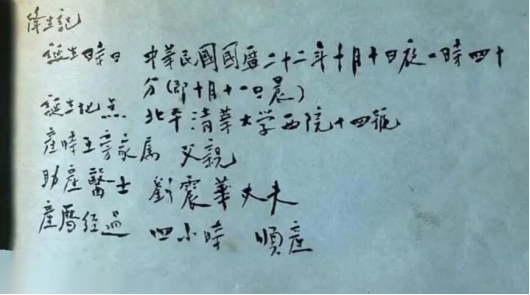 从我出生之日写起吧。翻开我至今还保留着的出生时父亲准备好的一个小册子,他用很工整的小楷毛笔字写着“小珍妮生活略史”,珍妮是当时父亲为我起的小名。册子第一页为“降生记”,详细记录了我出生的时间、地点、体重、助产医生姓名等信息。第二页起,连“谁来替我洗澡”这样的细节也一一写下。最有趣的是,父亲甚至记录了我第一次微笑和咿呀学语的时间:“十二月十三日:开天然第一次笑靥”“十二月二十三日吚唔说第一次童话”。字迹纤细而工整。这一切让我深深感受到,父亲真是一位十分细心和充满爱心的好父亲。