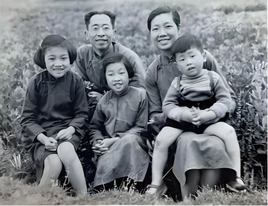 余瑞璜夫妇与儿子余真华、余理华(前)