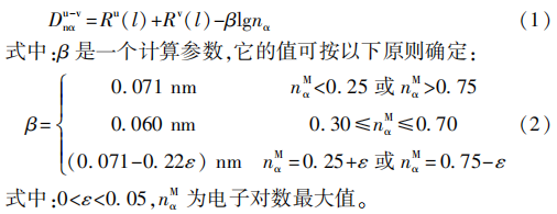余瑞璜院士基于泡利等在键距方面的工作,给出了余氏理论的两原子间键距公式,即: