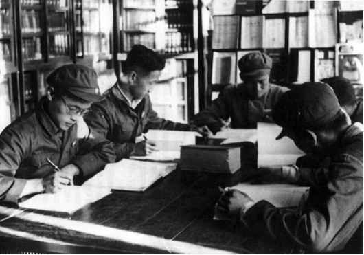 学生在物理系资料室写毕业论文