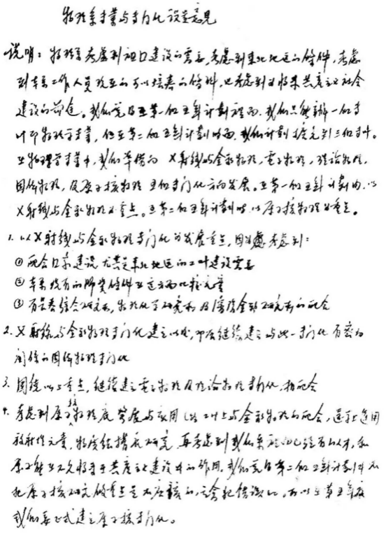 系主任余瑞璜关于“物理系专业与专门化设置意见”手稿 1953